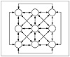 We will describe the use of a Hopfield network to attempt to solve the traveling salesperson problem. There are n2 neurons in the network arranged in a two-dimensional array of n neurons per row and n per column. The network is fully connected. The connections in the network in each row and in each column are lateral connections. The layout of the neurons in the network with their connections is shown in Figure 15.1 for the case of three cities, for illustration. To avoid cluttering, the connections between diagonally opposite neurons are not shown.